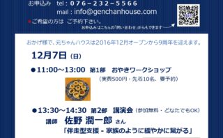 お陰様で元ちゃんハウスは9周年を迎えます。恒例のおやきづくりと佐野潤一郎さんの講演と茶話会があります。絶対に楽しい時間になると思います。どうぞご参加ください。