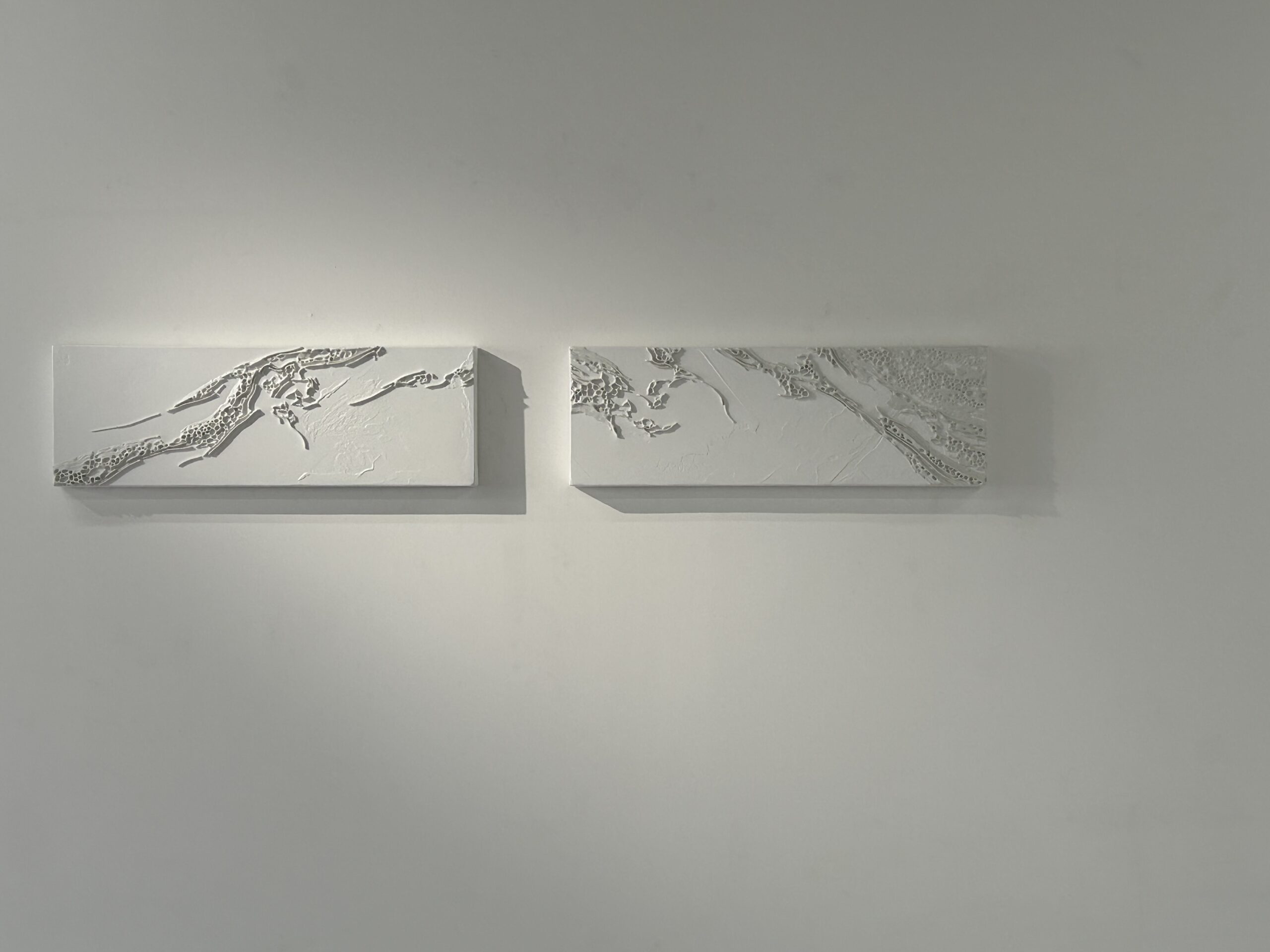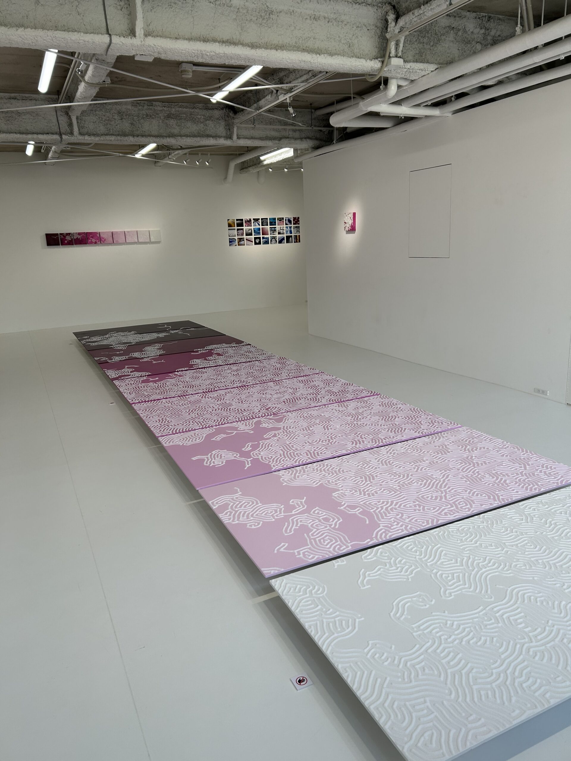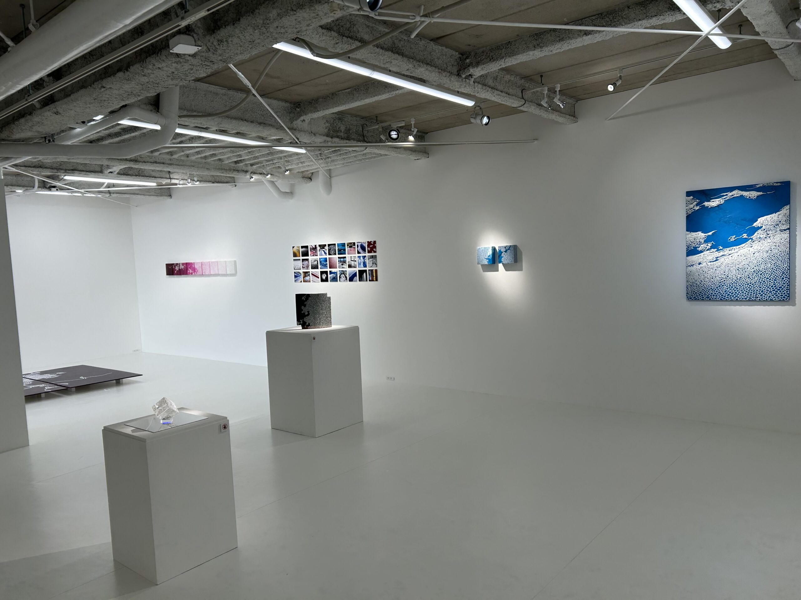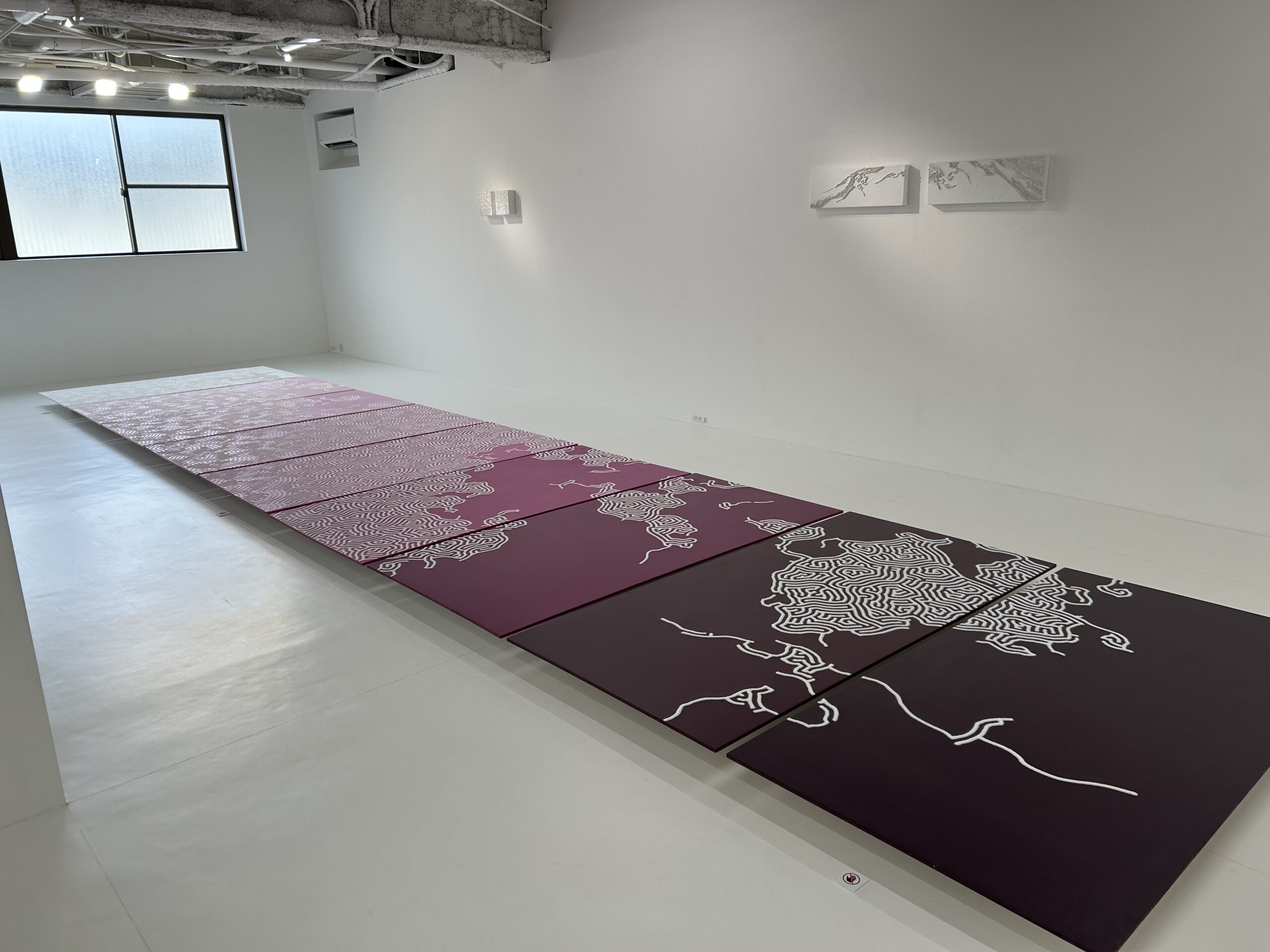一方で、だれもいない時間はすごく贅沢な時間と空間です。壁も床も真っ白なギャラリーで山本さんの作品に囲まれて、ぼーっと何も考えないで、ただ空間に身を置いてゆっくりと呼吸しました。見も心も癒されます。ここのところ毎日バタバタと時間が過ぎることも多いのですがこの時間は内省しつつパワー充電できました。山本さんが『このギャラリーで過ごす時間が、移ろいの中にあるささやかな光と彩りを感じていただけるひとときとなれば幸いです。』とおっしゃっていますが、まさしくそれです!それを体感しました。奥の方には映像のコーナーがあるのですが、その音楽とのゆっくりした語りの声がまた心地よいのです。