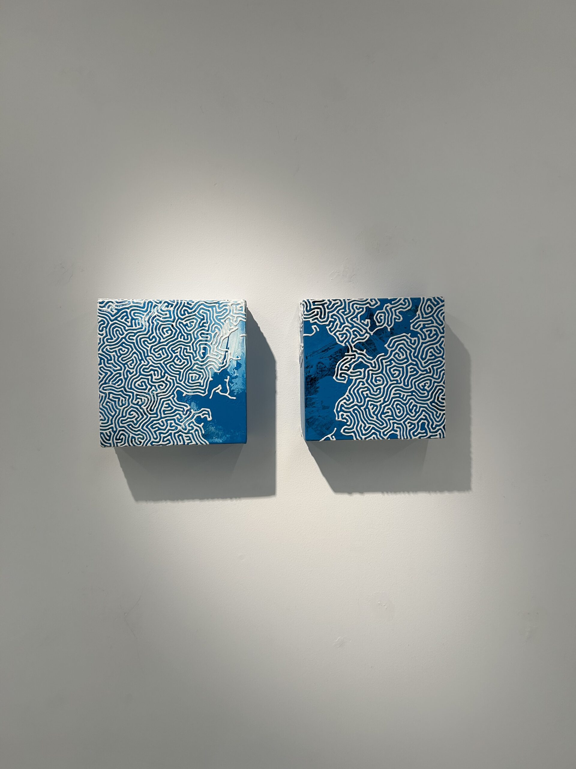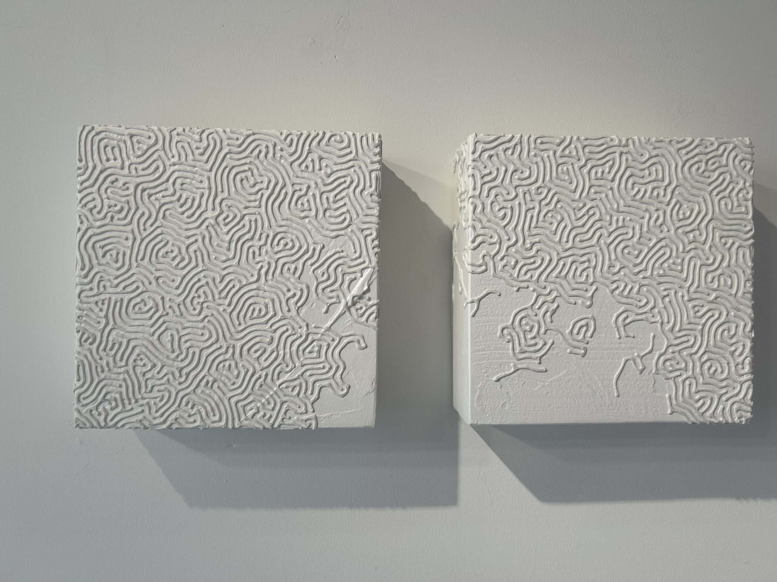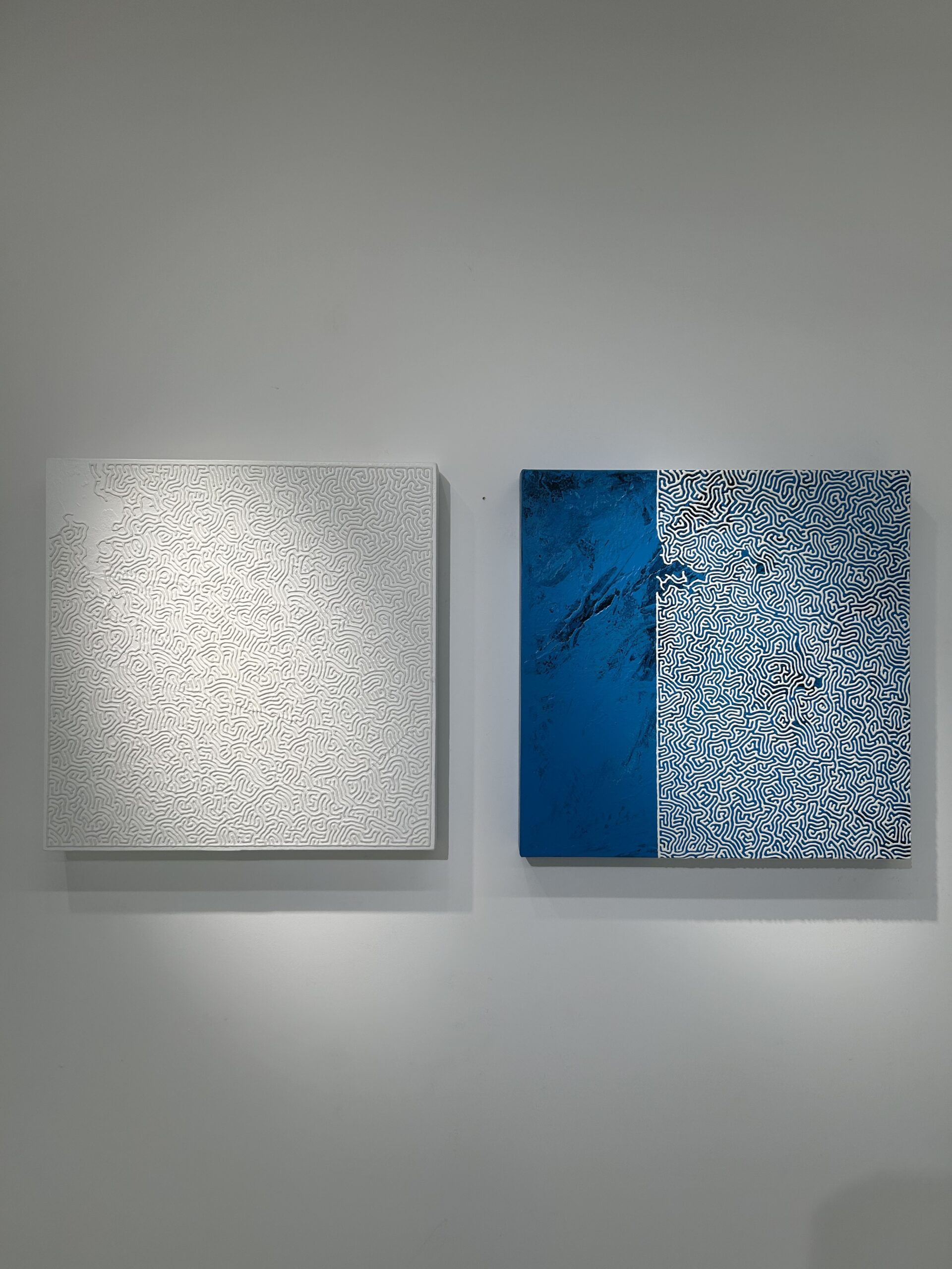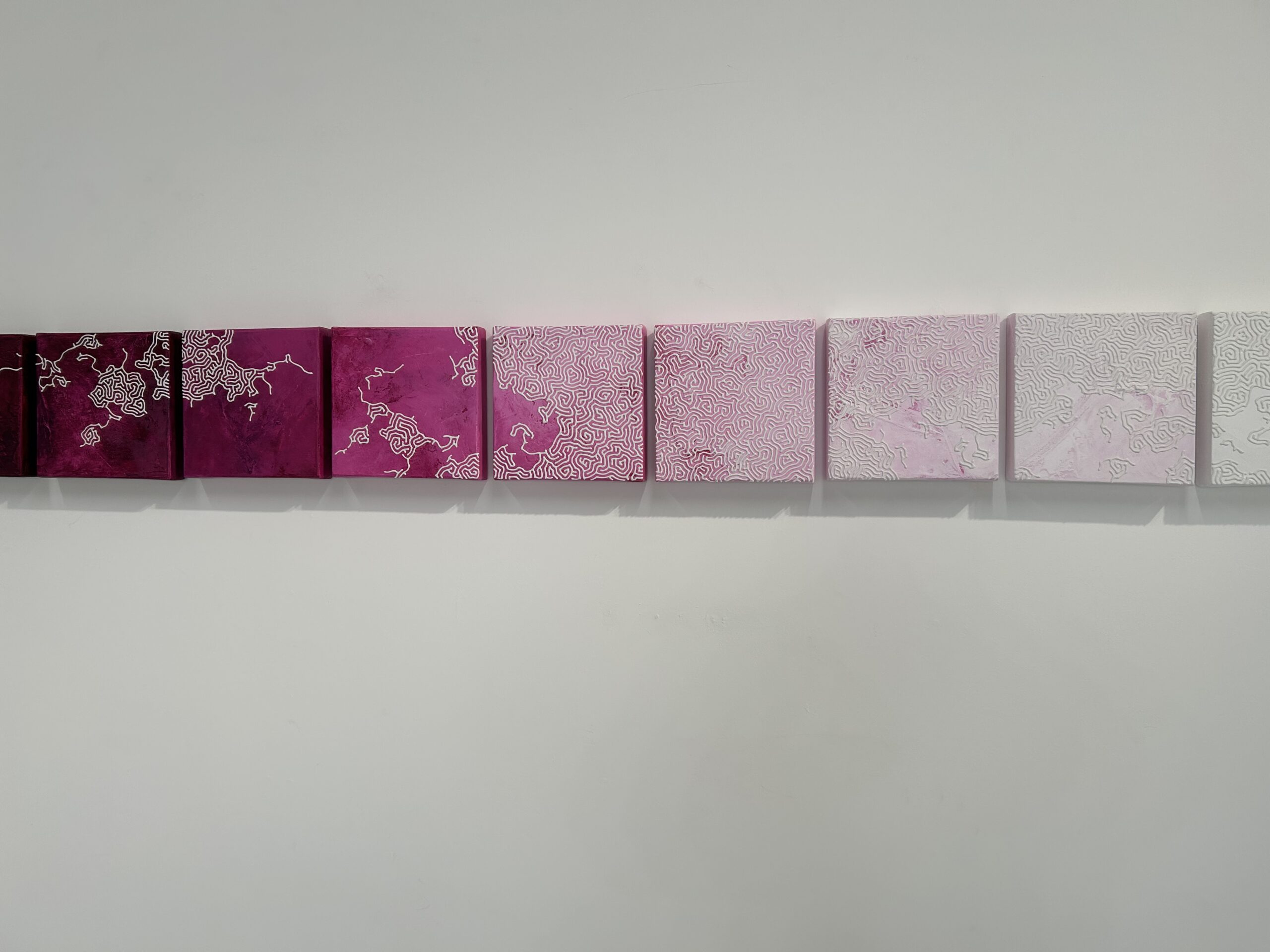 一方で、だれもいない時間はすごく贅沢な時間と空間です。壁も床も真っ白なギャラリーで山本さんの作品に囲まれて、ぼーっと何も考えないで、ただ空間に身を置いてゆっくりと呼吸しました。見も心も癒されます。ここのところ毎日バタバタと時間が過ぎることも多いのですがこの時間は内省しつつパワー充電できました。山本さんが『このギャラリーで過ごす時間が、移ろいの中にあるささやかな光と彩りを感じていただけるひとときとなれば幸いです。』とおっしゃっていますが、まさしくそれです!それを体感しました。奥の方には映像のコーナーがあるのですが、その音楽とのゆっくりした語りの声がまた心地よいのです。