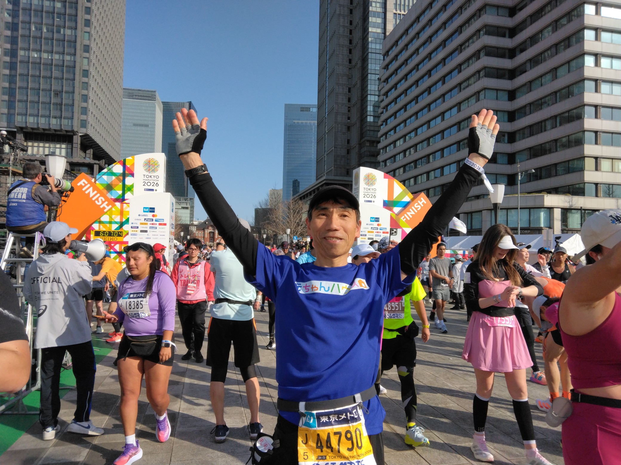 昨年の金沢マラソンで元ちゃんハウスTシャツを着て走ってくださった、ピアサポーターの水内誠さんから「今日の東京マラソンは過去最高の39,000人が参加し、天気にも恵まれ、無事ゴールできました」と、うれしいメールと写真が届きました。