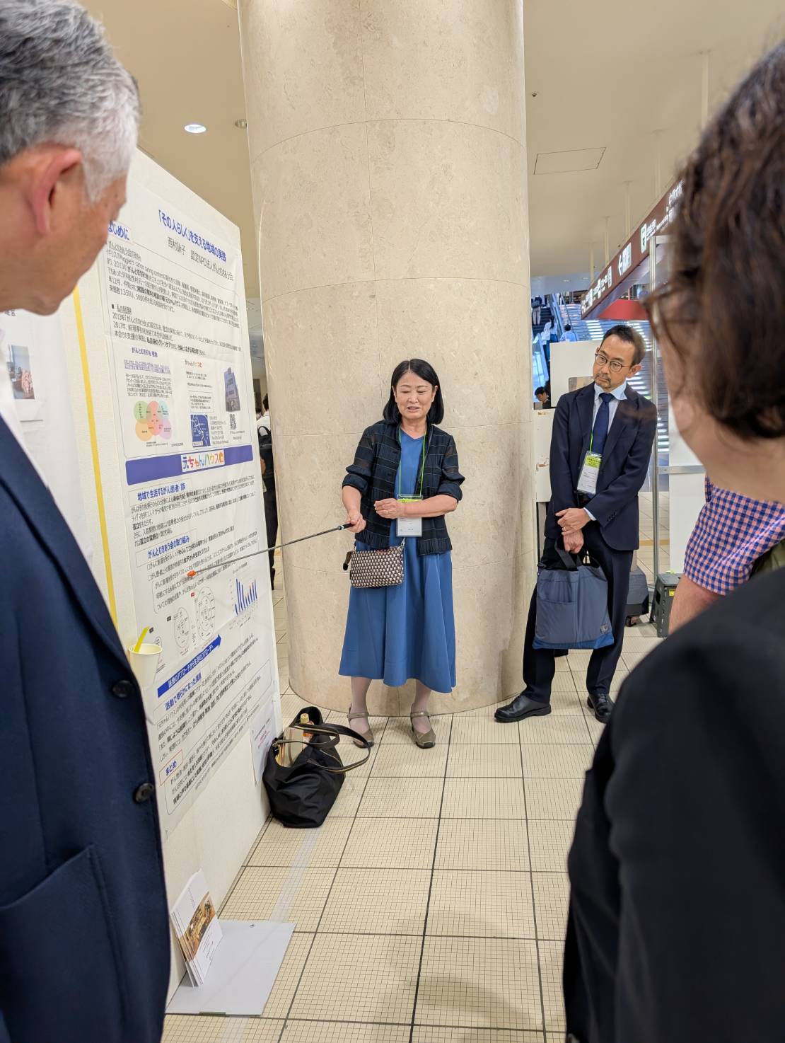 ポスター発表も久しぶりなので、仕上げまでギリギリ。「なんでもっと早く始めなかったのか」と反省しきりでした。発表は2日目の夕方、金沢駅地下のもてなしドームで行われ、医療職のポスター会場の入り口という好位置でしたが、帰宅時間帯とも重なりマイクなしでは声が届きづらい状況。