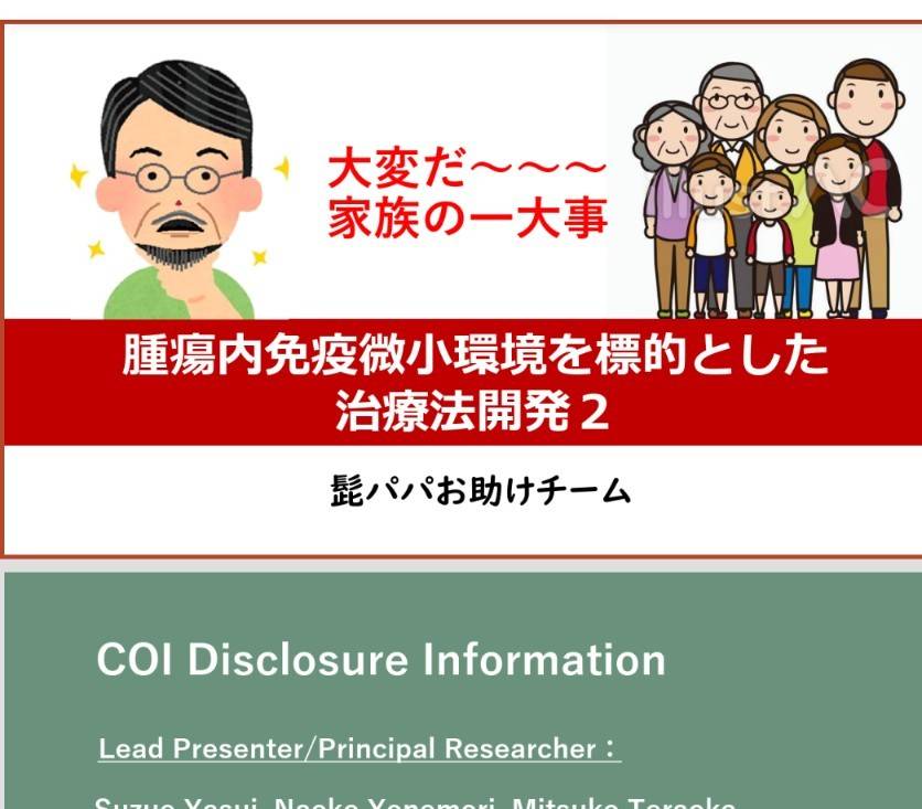 (*目的:がん患者や家族を支援する団体運営者または個人が、日本癌学会学術総会への参加を通じてがん研究に理解を深めることで、がん研究に対してがん患者や家族の立場から参画する「リサーチ・アドボケート」が養成されること) むっず!