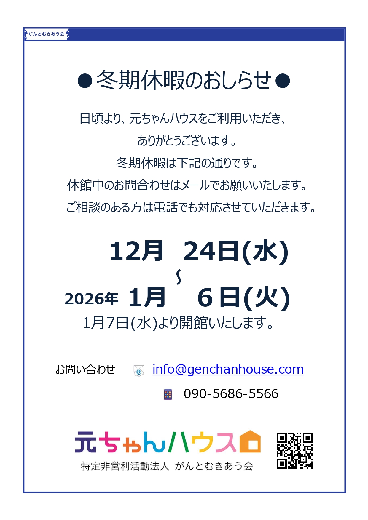 冬季休暇のお知らせ