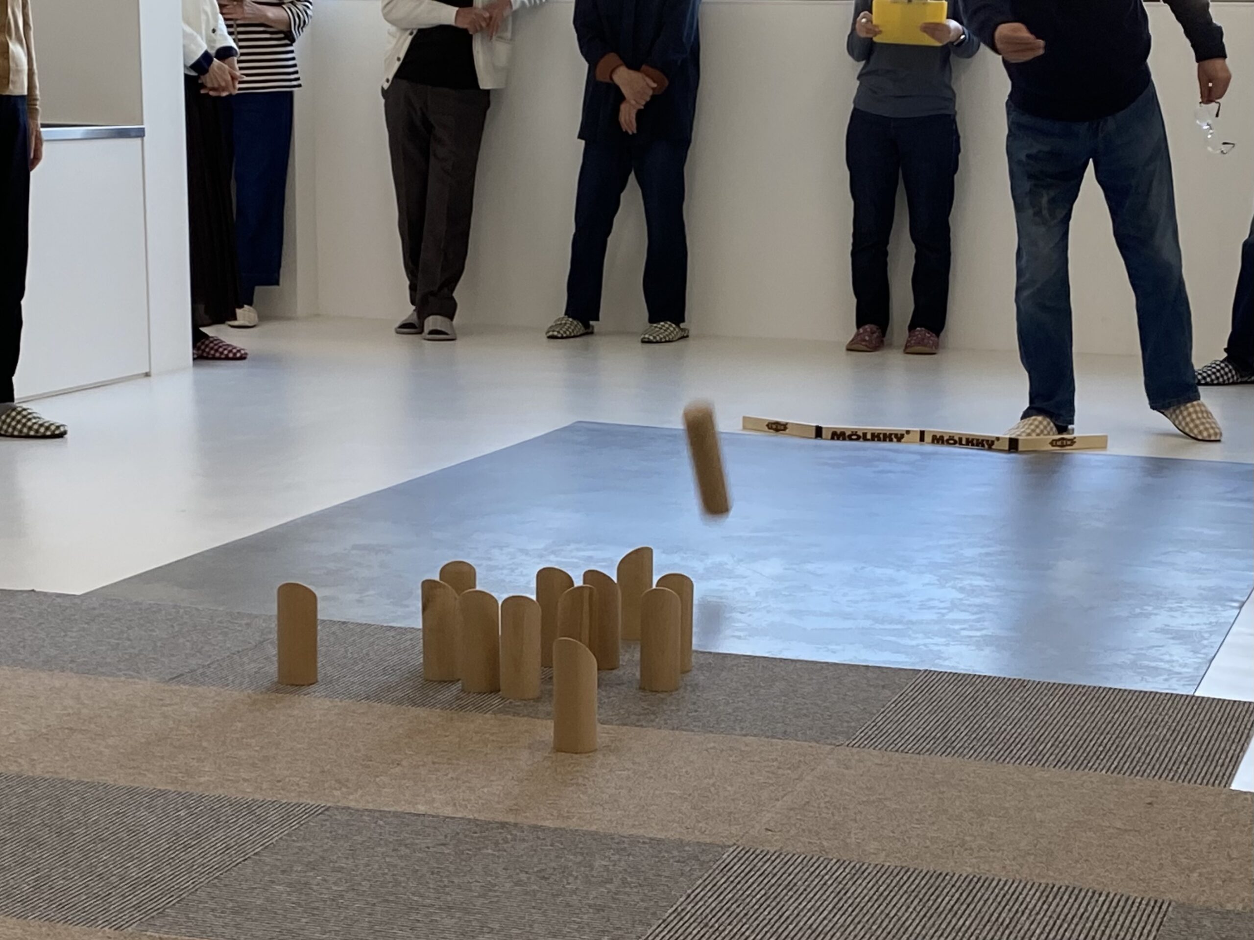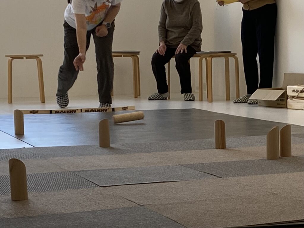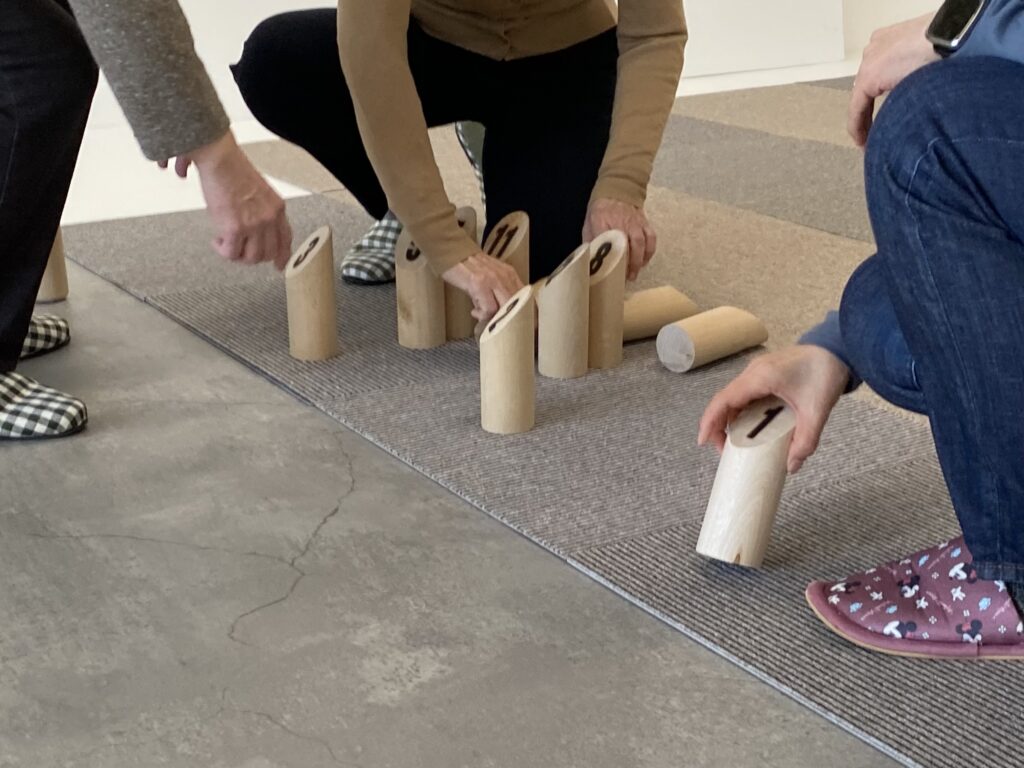 今日は『モルック体験会』を元ちゃんハウス2階ギャラリーケアリングで行いました。モルック経験者(1、2回やったことがある程度の経験者)は3名でほとんどの方が初めての体験でした。