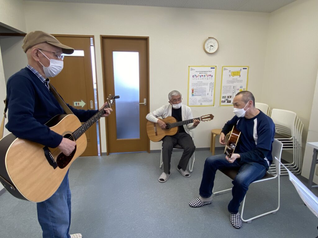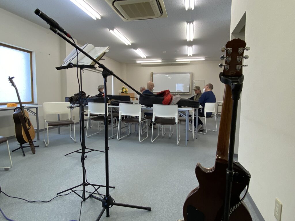 また今日はモルック体験会と知りつつも、4階GSバンドの皆さんは各自楽器を持参しての参加でした。体験会の前後にミーティングと練習をしていました。季節柄、活動意欲が上がりますね。『みんなの倶楽部』はみんなの居場所になっています。