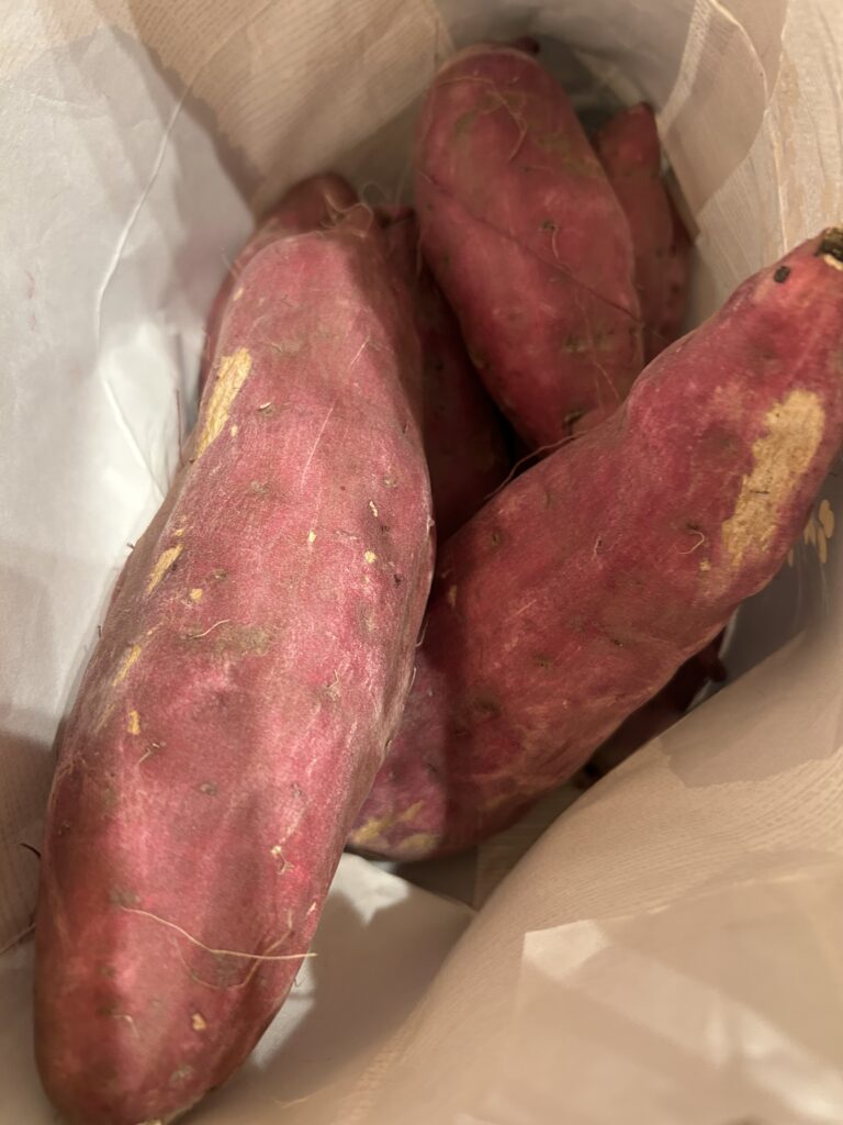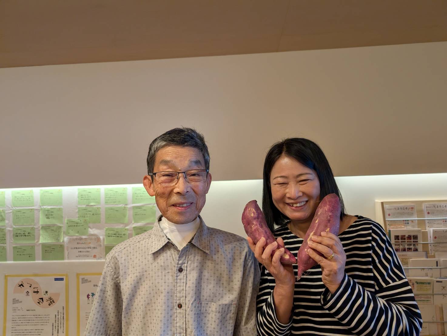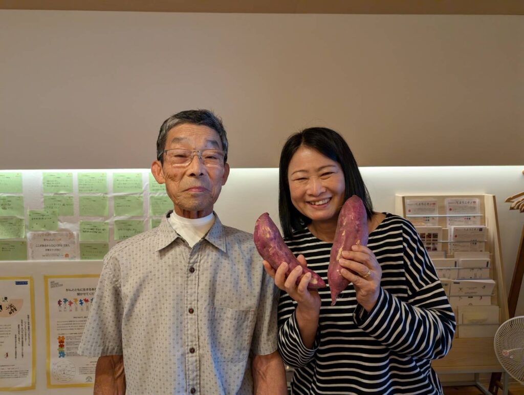 サツマイモをたくさんいただきました。 元ちゃんの窓 2025.09.24 秋ですね~。今日は石川喉友会の食道発声教室の日でした。皆本さんが大切に育てた大きなサツマイモをメンバーの皆さまや元ちゃんハウススタッフにとどうぞと持ってきてくださいました!。10月4日の料理教室に使う分もあります。どんな料理になるのかな?参加される方、楽しみにしていてくださいね。西村は焼き芋にしようかな~。でも「焼き芋より蒸した方が太らないらしいよ!」とありがたい?アドバイスいただきました。西村肥ゆる秋~♪ 皆本さん、ご馳走様です♪。
