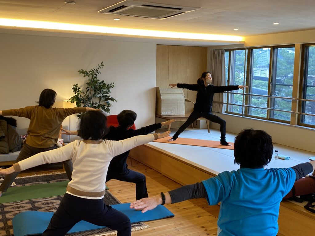 稲穂のポーズや猫のポーズ、英雄のポーズなど側腹部や股関節周囲、下半身のストレッチなどを重点的に行いました。足腰が弱らないように、寒さに負けずに活動を続けていきたいですね。