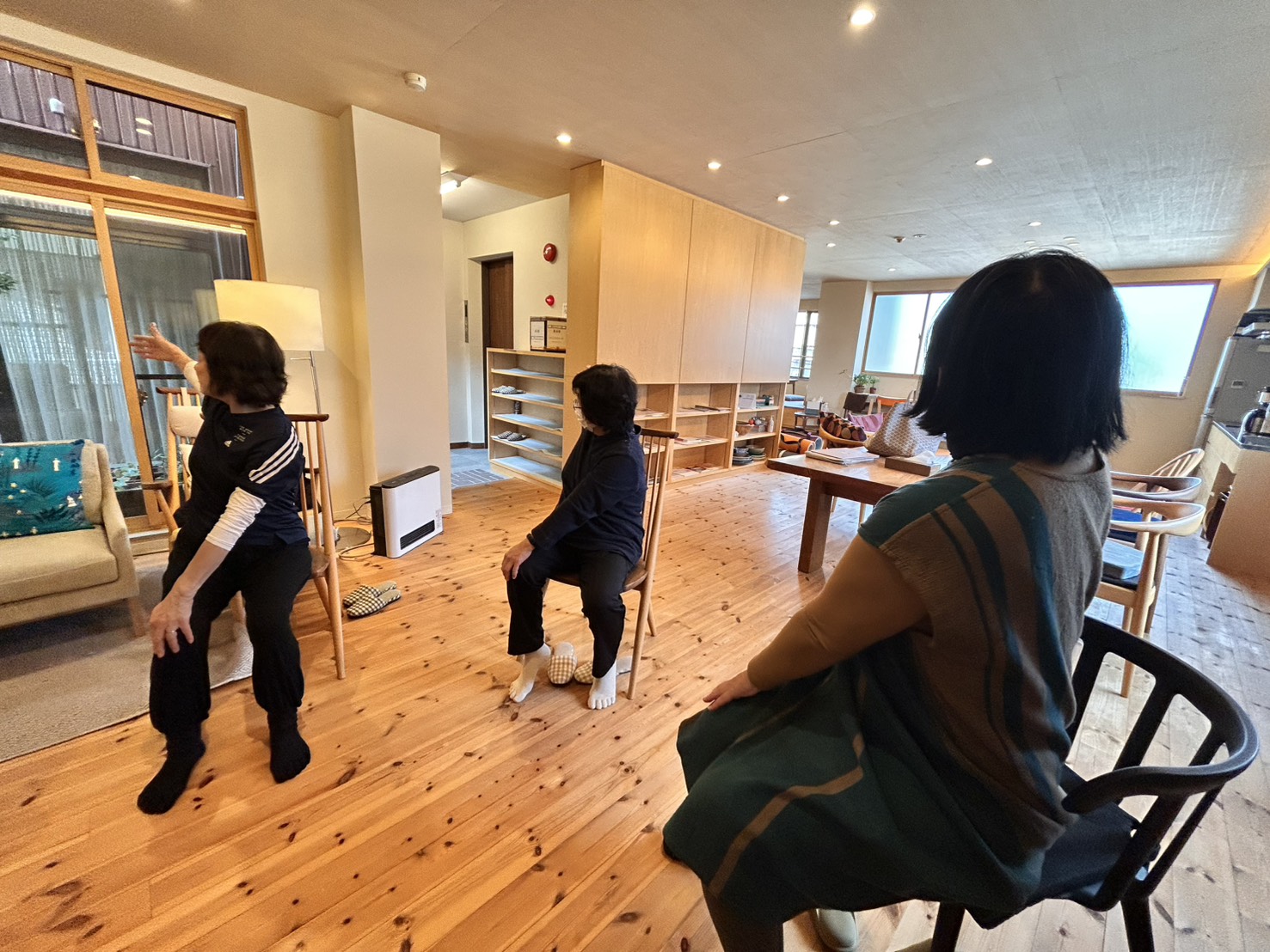 今回は椅子を円形に並べて、椅子に座ったままできる運動を行いました。