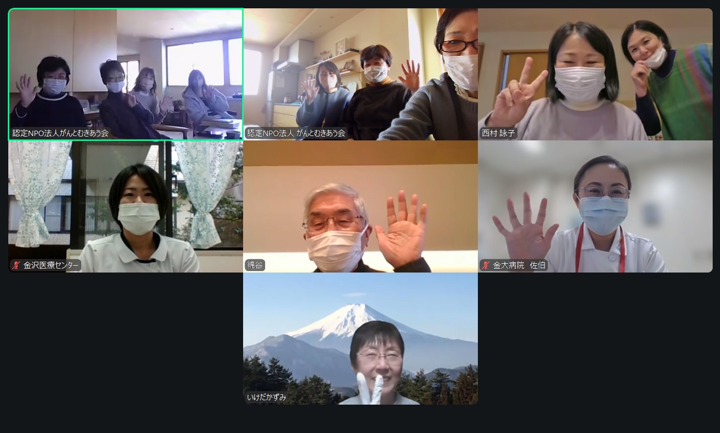 交流会には金沢大学附属病院の緩和ケアチームの佐伯ナース、金沢医療センターがん緩和ケア・治療専門ナースの山森さん、金沢市民病院のがん専門ナースの天日さんの参加もありました。