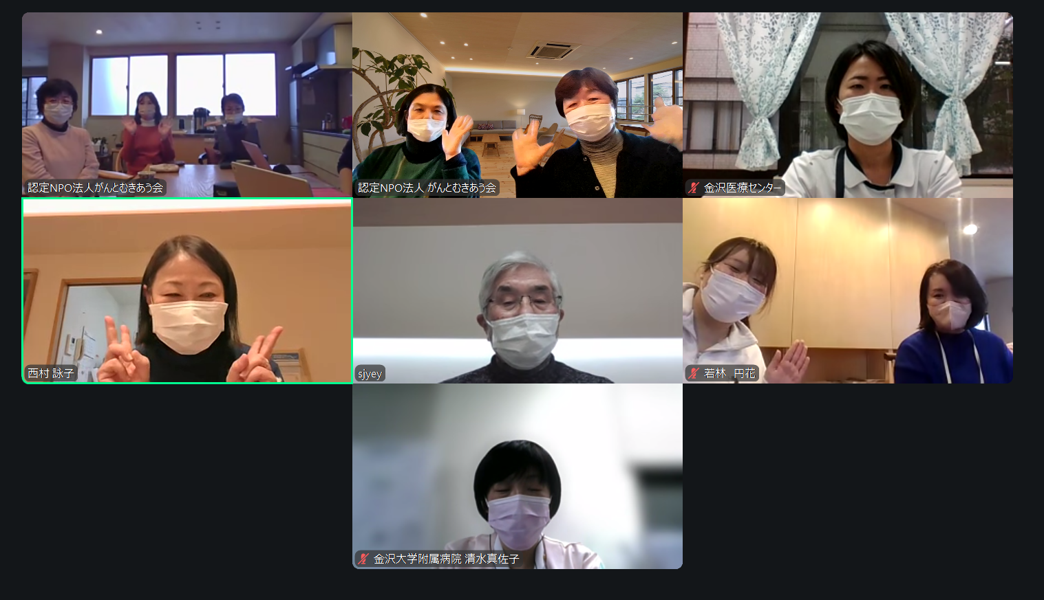 交流会には金沢大学附属病院の緩和ケアチームの清水師長さん、金沢医療センターがん緩和ケア・治療専門ナースの山森さんもご参加くださいました。いつもありがとうございます