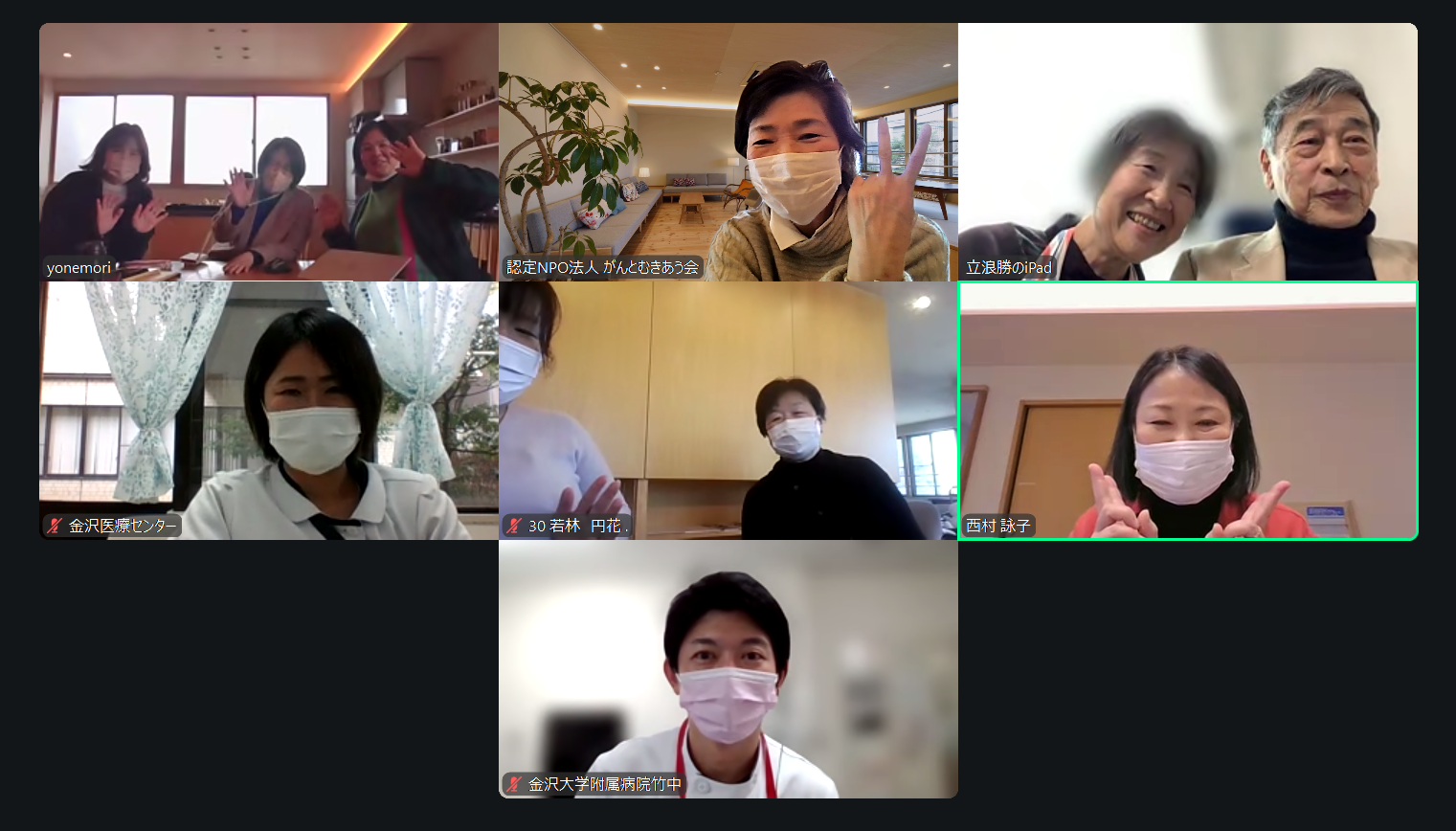 交流会には金沢大学附属病院の緩和ケアチームの竹中看護師、金沢医療センターがん緩和ケア・治療専門ナースの山森看護師の参加もありました。