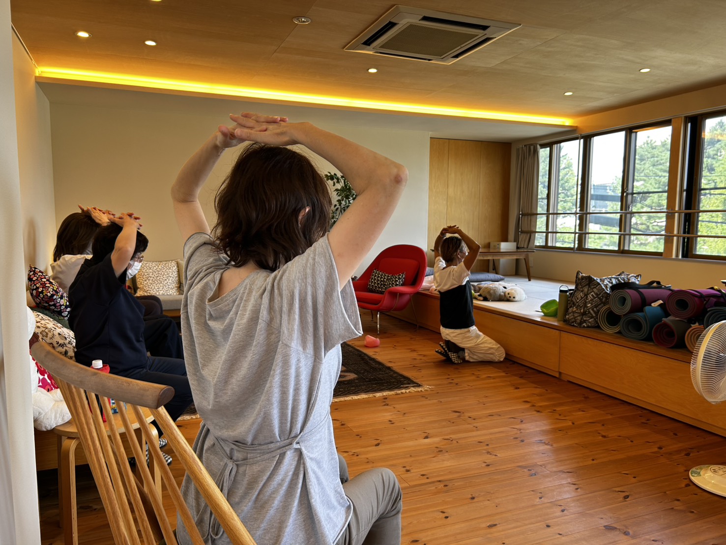 初参加の方もおられ、心地よい秋風が吹き抜ける元ちゃんハウス3階で楽しく体のメンテナンスを行いました。体メンテナンスはいつもボールを使ったり、クッションをつかったりしながら、体の力を入れる部分を意識したり、触れている部分の筋肉を意識したりしています。加えて、身一つでできる筋トレ的なものにも今回は取り組みました。
