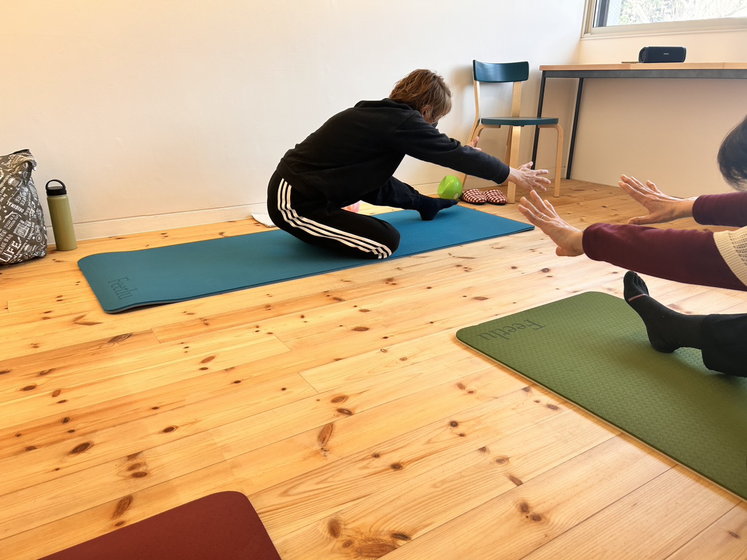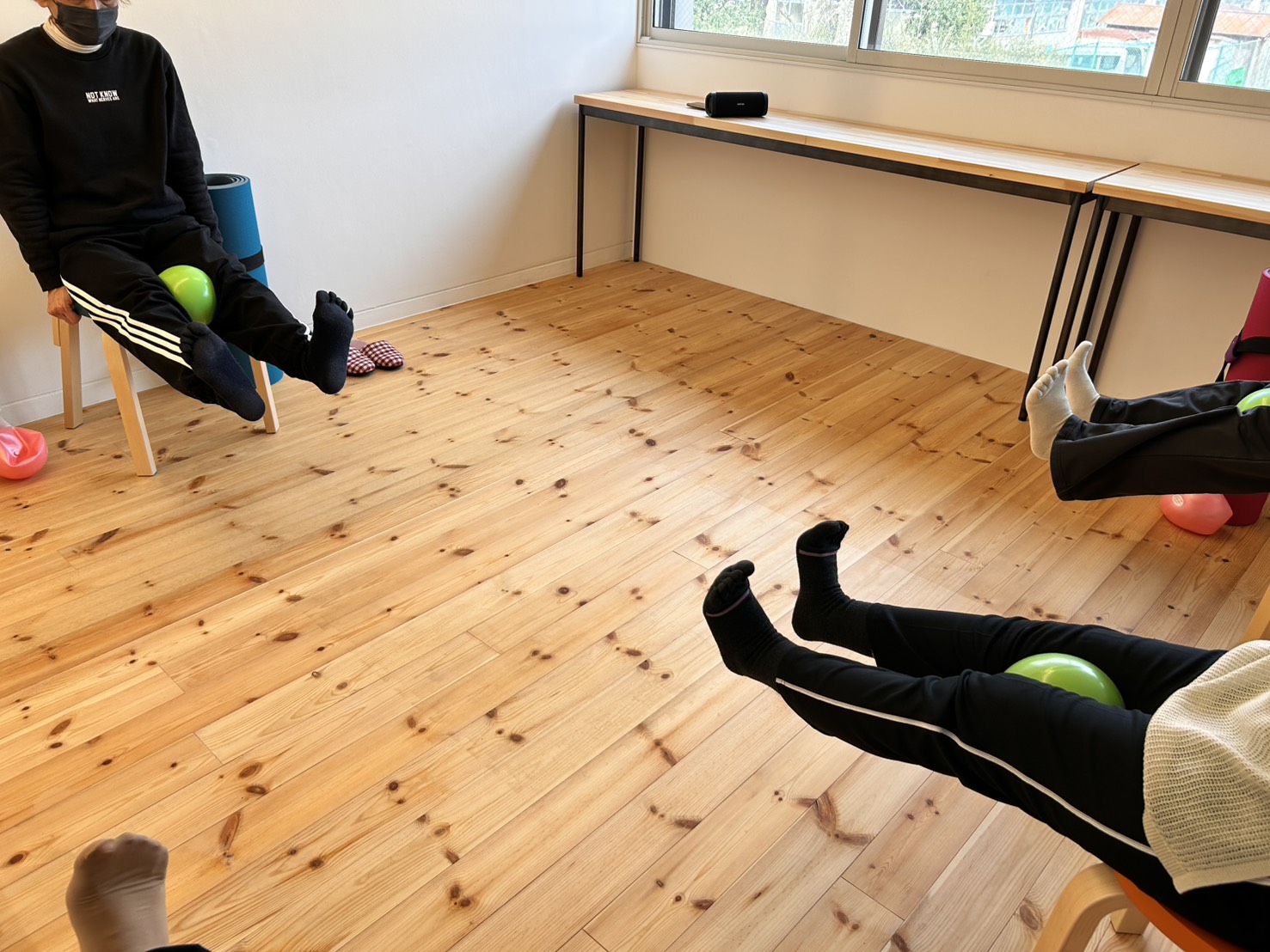 体操を頑張った後はリラックスの時間もしっかりあります。ゆったりとした音楽の中、体のほぐれを感じるのはとても気持ちよく、ついまどろみに落ちていきそうになりました。