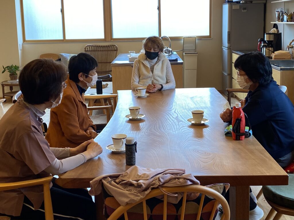 体操の後は茶話会です。治療中でも、運動を楽しみながら継続している方のお話をお聞きしました。これからの季節に合わせた運動を続けていきたいですね。