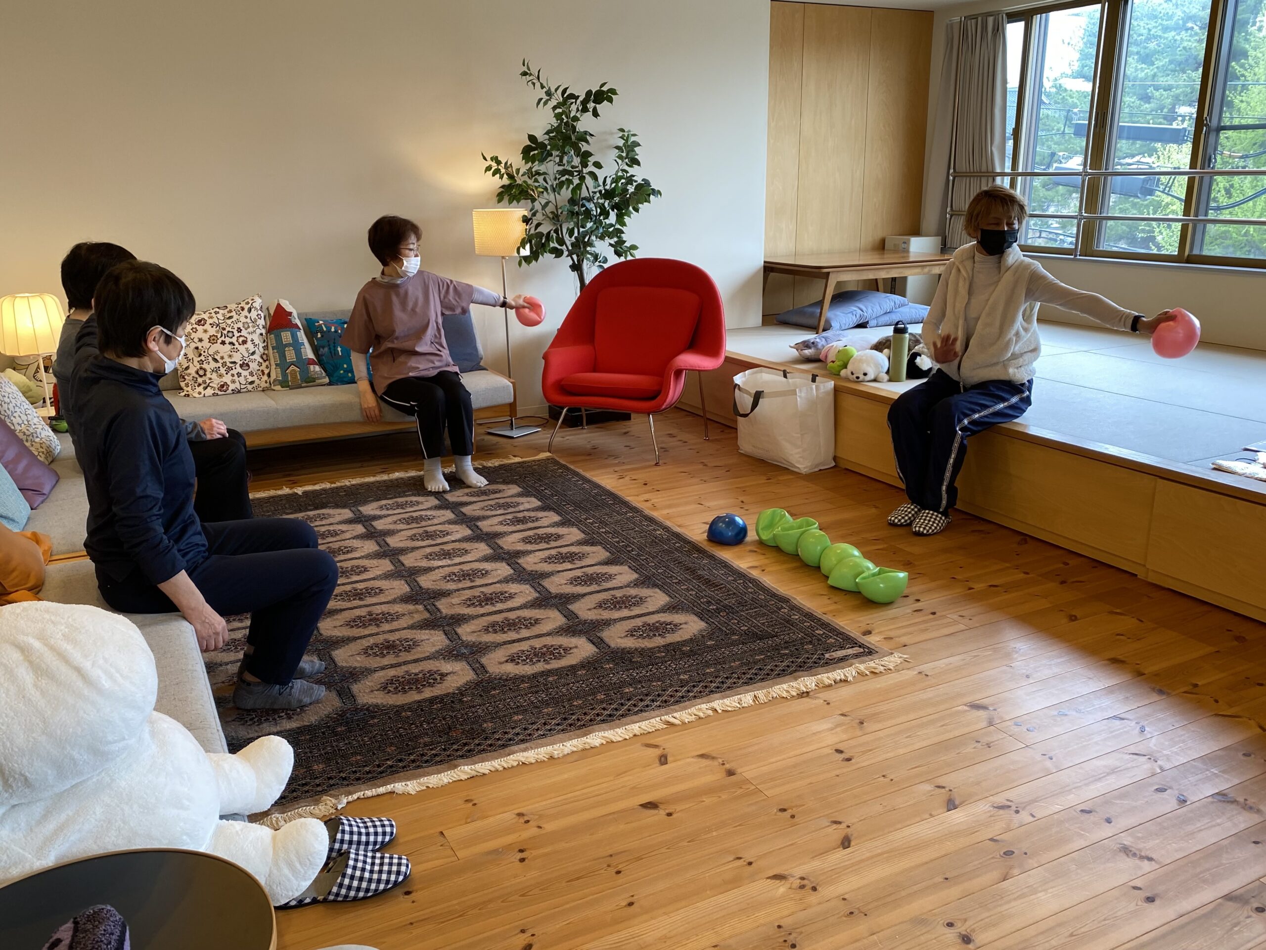 上肢のマッサージから始まり、首・肩周辺・背筋・側腹部を伸ばし、さらにボールを使ってひねりを加え普段使わないような筋肉にも刺激していきます。とてもゆっくりと丁寧に運動していくので、自分でもこの部位が刺激されていると手応えを感じることができました。