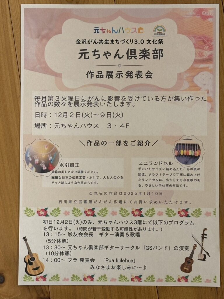 次回は12月16日(火)13:00〜3階で水引細工、ワイヤーアートです。GSバンドのご参加につきましてはお問い合わせください。
