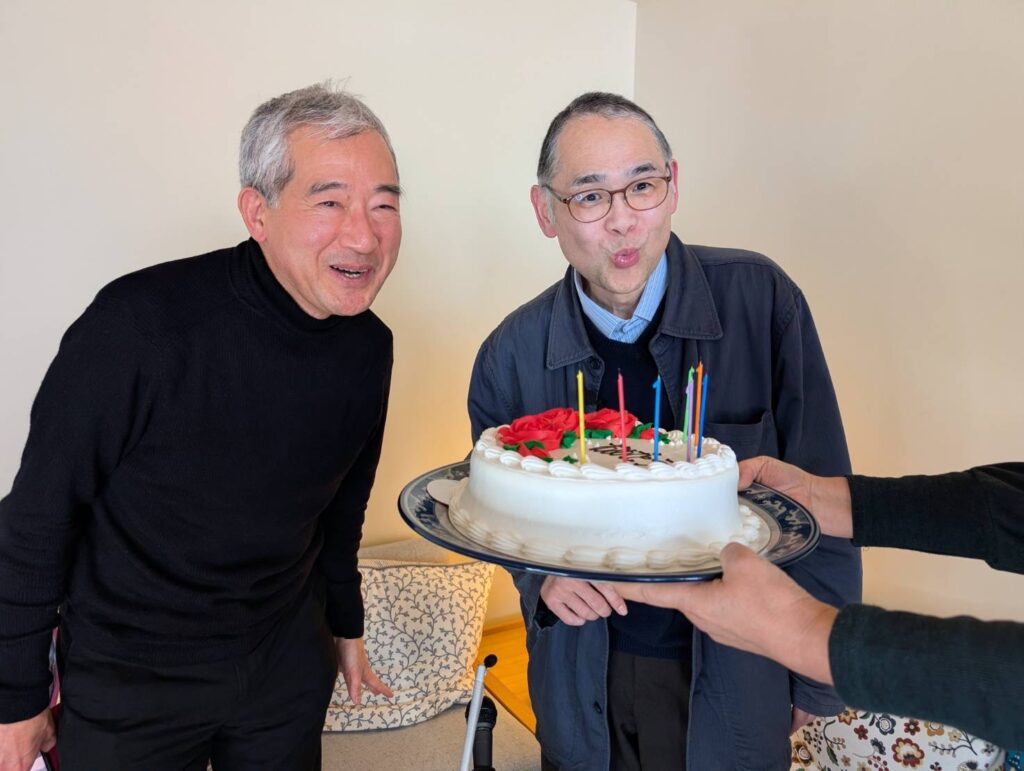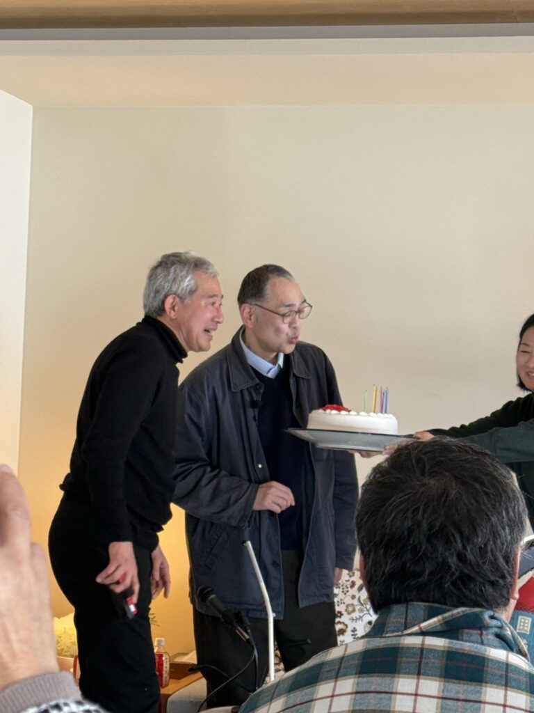休憩中には、現地参加の方と一緒にお二人の誕生日をお祝いして一口ずつではありましたがケーキを召し上がっていただきました。