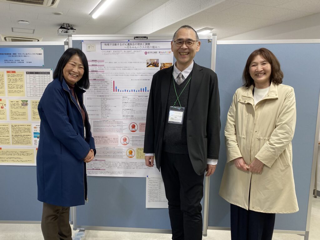 元ちゃんハウスからは、もくれんの会(遺族会)での実践報告を天日さんにポスター発表していただきました。(もくれんの会では毎回終了時にアンケートにご協力をいただいております。2019年からの25回開催分延べ156名のアンケートを集計し、参加者のニーズや気持ちの変化などを図や表にまとめ発表させていただきました。ご協力いただきました皆様ありがとうございました。)