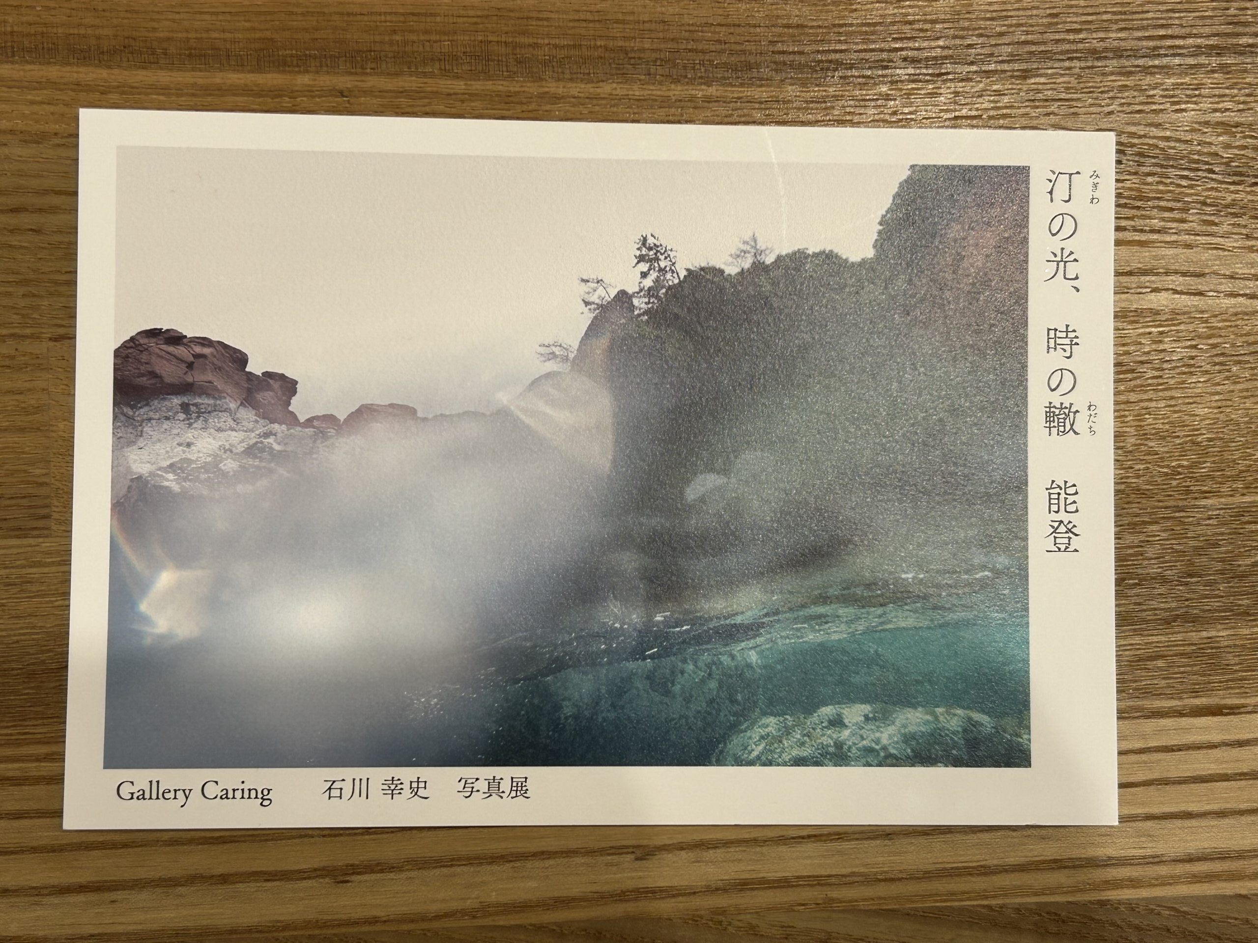 石川幸史さんの写真展 汀の光、時の轍 能登が始まりました。 元ちゃんの窓 2025.10.03 元ちゃんハウス2階の「ギャラリーケアリング」で、本日より石川幸史さんの写真展が始まりました。開催期間は 10月3日(金)〜10月13日(月)、時間は 11:00〜19:00 です。 今回展示されているのは、震災後の能登を撮影した写真です。石川での展覧会の幕開けにふさわしいとの思いから、「ギャラリーケアリング」で開催いただけることになりました。ぜひ足をお運びください。私たちも、能登の新たな風景を見つめながら、その地への思いを馳せたいと思います。