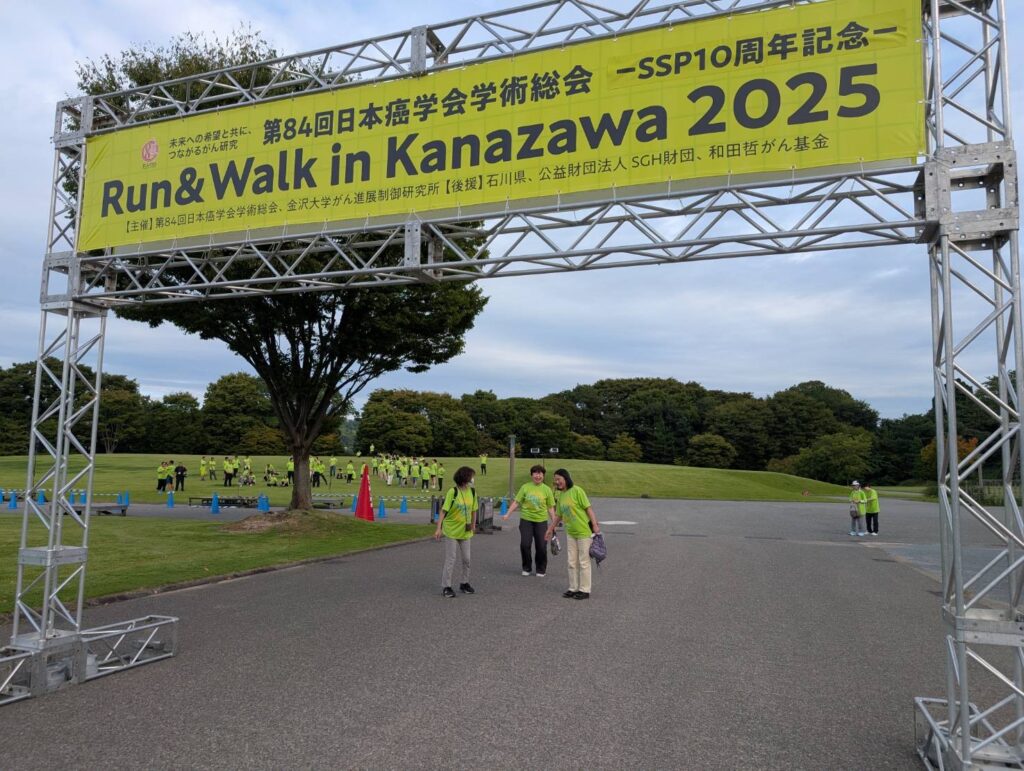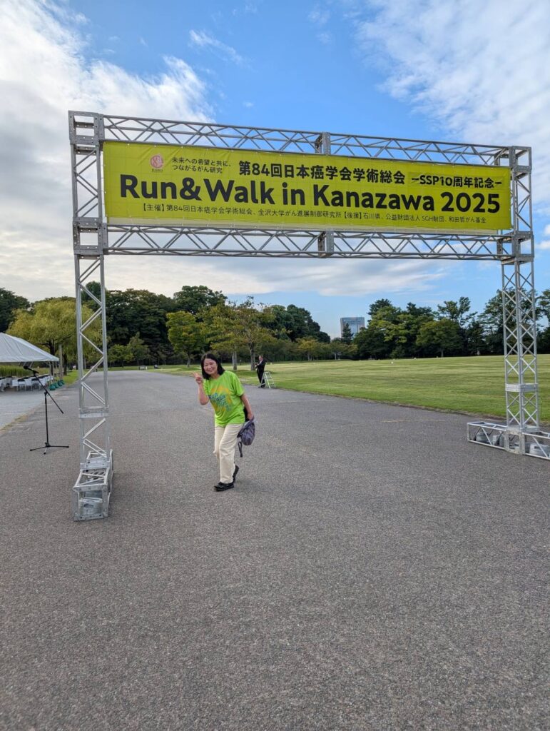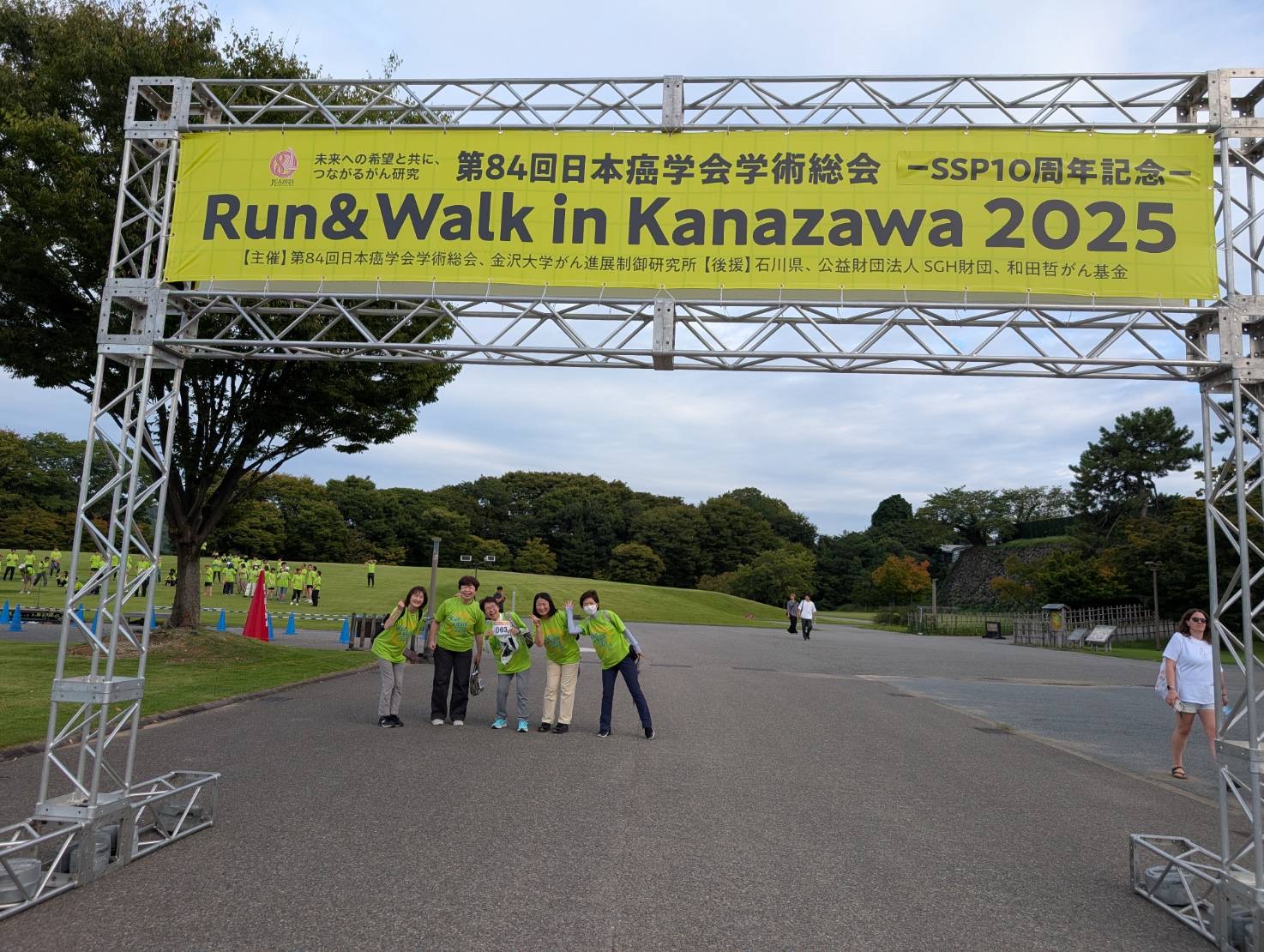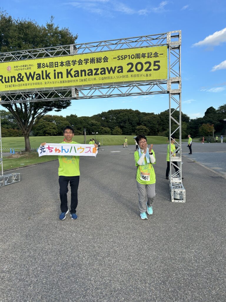 元ちゃんハウスの西村と米森が25日からの日本癌学会サバイバー・科学者 プログラム(SSPプログに参加します。学会開催に先立ち今回、初めて「Run & Walk in Kanazawa 2025」が開催されるということで元ちゃんハウスのみんなで参加してきました。がん研究者とがん患者・ご家族が一緒に楽しく健康的に走る(歩く)ことで、お互いの理解を深めることを目的としているとのことで夕方の金沢城址公園のコース3キロを楽しく歩きました!みんなで完走ではなく、完歩!出来ました!。