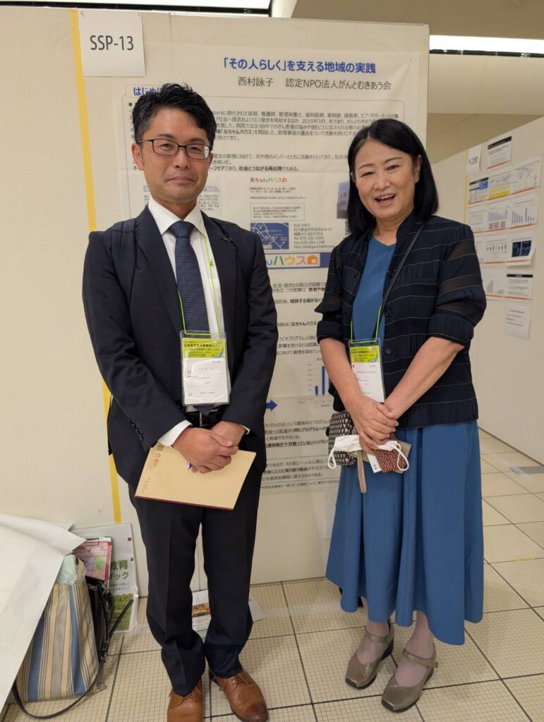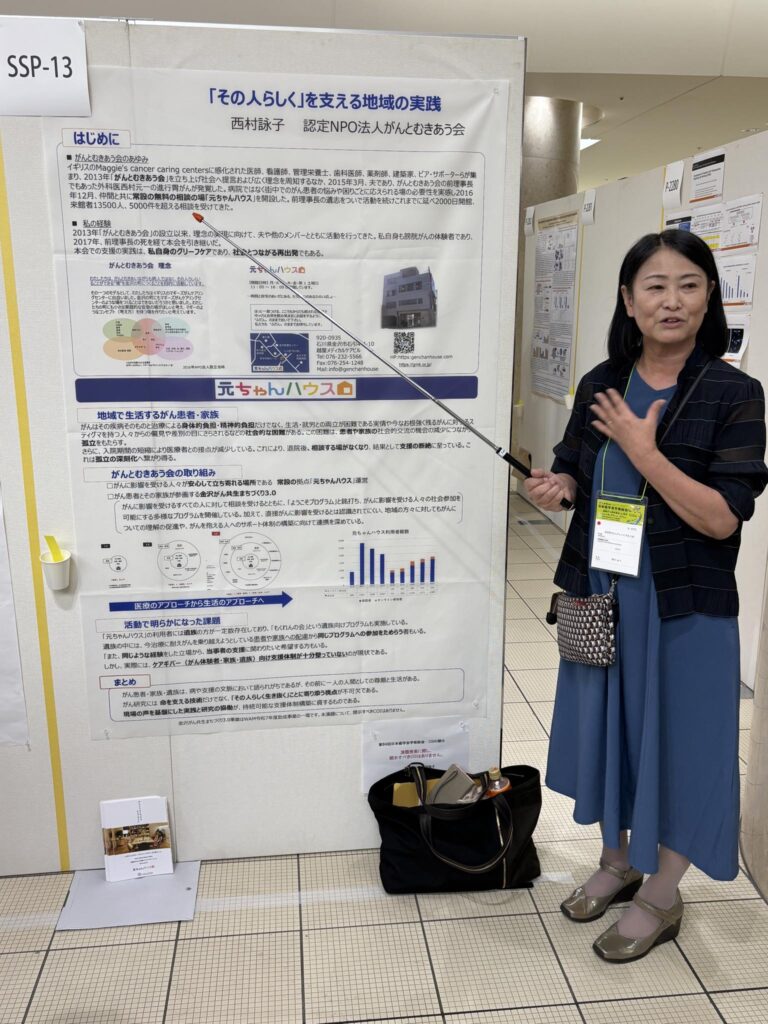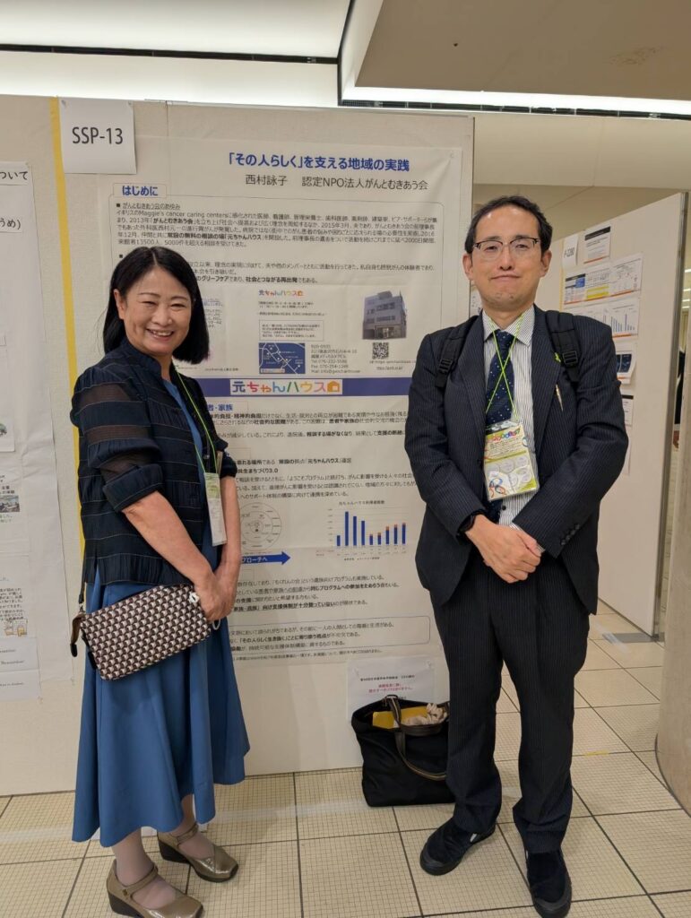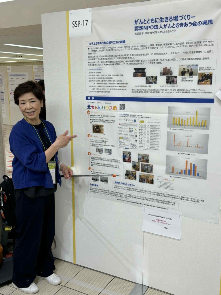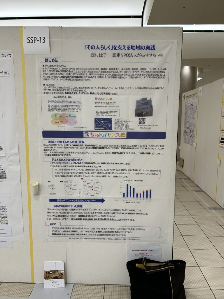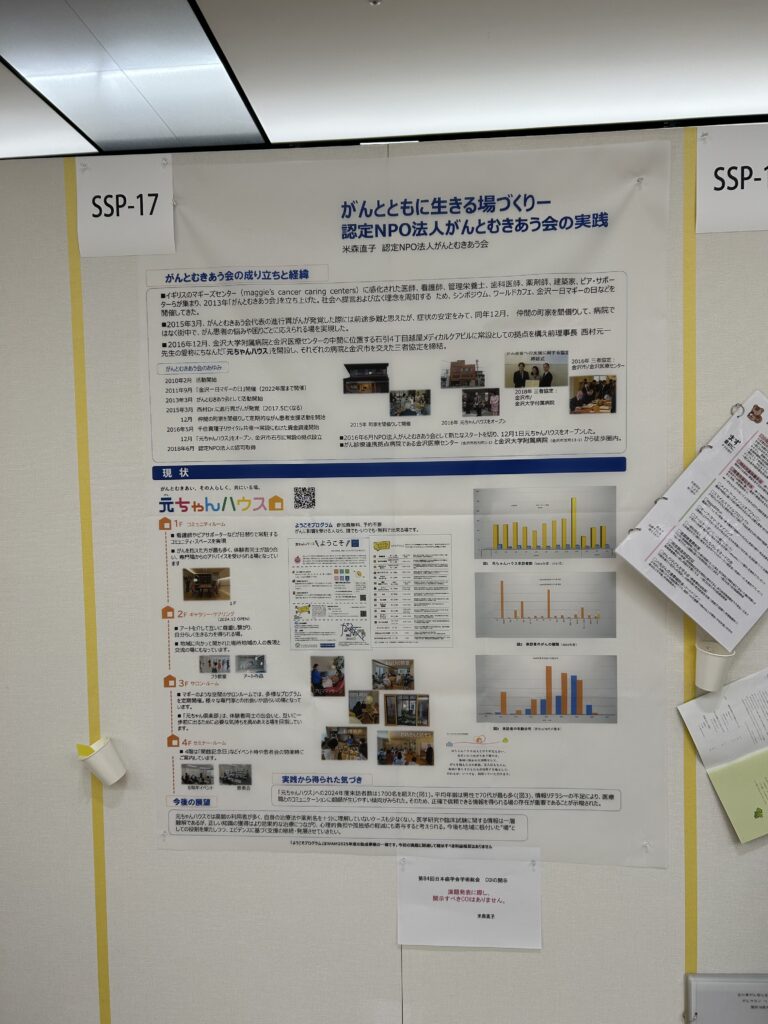 9月25日~27日まで第84回日本癌学会学術総会が金沢駅周辺のホテルや音楽堂で開催されました。56年ぶりの金沢での開催とのことで元ちゃんハウスからも西村と米森さんが患者参画プログラム「サバイバー・科学者プログラム(SSP)」参加させていただきました。ポスター発表は西村が「その人らしく」を支える地域の実践、そして米森さんが「がんとともに生きる場づくり~認定NPO法人がんとむきあう会の実践」との演題で発表しました。