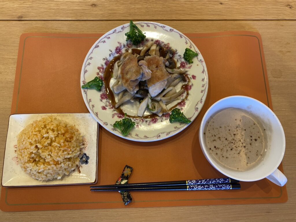 それからチキンを焼き、スープの味を調え、盛り付け。一斉に熱々を食べてほしいところですが、人数が多くなると難しいですね。